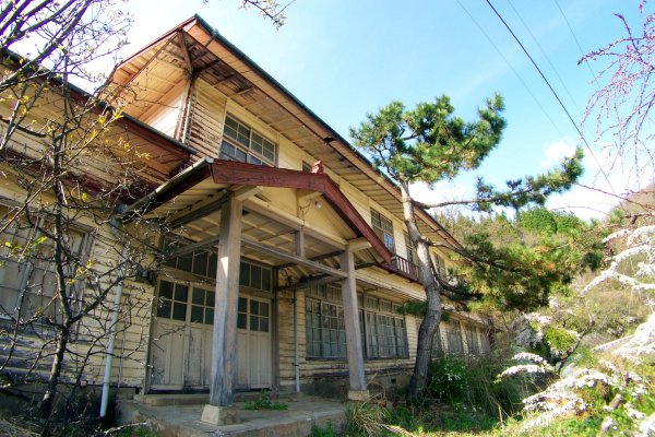 | 写真13.小倉沢小学校の校舎の一部。正門に向う坂道沿いに建っている建物の一つ。こうしてみるとまだまだ現役で使用できるほど程度は良い。株式会社ニッチツが現在でも利用しているものわかるような気がする。 |
