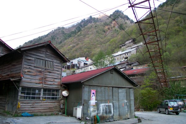 筆者にとって日窒見学までの道のりは長いものだった。最初に訪問を試みたのは、2001年1月28日。この時は、秩父にある柴原温泉に1泊するという周到な計画であったのだが、あいにくの記録的な大雪で中止となる。その後も同行者の都合が付かず2回ほど流れており、今回が4度目の挑戦となった。 日窒鉱山までのルートで気を付けないといけない所は二箇所。一つは国道140号から中津峡への入り口で、新しく出来たループ状の橋梁を渡り、トンネルに入る直前を右折して入る。中津峡への道に入ると、途中右手にトンネルがあるT字路にさしかかるが、ここがもう一つの注意点。このT字路を右折しなければならない。走行中、突然道がダートになったら、右折し忘れで間違えているので、引き返すこと。 日窒鉱山は、壁面が素堀の「雁掛トンネル」を抜けると出現する、峡谷の中の工場地帯だ。雁掛トンネルを抜け、右側に両神山、左側に赤岩峠を望みながら峡谷沿いの道を登って行くと、右側に秩父鉱山簡易郵便局と日窒資源開発本部の事務所が出現する。その先には、右手の斜面に巨大な選鉱場が見えてくる。これが現在でも操業しているリシンおよびタンカルの工場だ。両神山方面へ登って行くに従い、中津川の両側に当時の多数の住宅廃墟が見えてくる。川沿いに建てられたものもあれば、小高い丘の上に残されているものもある。鉱山敷地のほぼ中央に、共同浴場跡がある。さらに進むと、有名な小倉沢小学校跡、給食センターや丹岫寮などの施設がある集落を経て、珪砂工場に出る。この珪砂工場が事業場のほぼ外れとなり、それから先は八丁随道に至る上り坂が続く。 取材当日は良く晴れて、暖かく、標高860mの日窒鉱山も、汗ばむほどの陽気であった。中津峡沿いの道はライダーにとっては有名なようで、当日も多くのライダーが走行していた。日窒鉱山も廃墟マニアの間では有名になってしまったため、カメラを持って見学に来たグループも何組か見受けられた。WEBページで検索をかけると、いくつものサイトが日窒を紹介している。かつてはマニア向けの秘境であったところも、今となっては随分と有名になってしまったものである・・・・・・ 以下のフォトレポートは、日窒鉱山への入り口にあたる雁掛トンネルから、八丁随道に向けて道路を登って行くに従い見えてくる施設を、順番に掲載している。日窒鉱山へは雁掛トンネルからのアプローチを取るように。聞くところによると、八丁随道は、良く通行止めになってしまうそうだ。なお、鉱山事務所前には、大きな地図がかかっていた。最盛期の頃のもので、内容的には若干古いと思われるが、当時の様子を知る上で貴重な資料となっている。以下に、デジカメで撮影した地図を掲載しておく。詳細を見たい方は、地図を3つのパートに分けて拡大撮影しているので、そちらを参照して頂きたい。