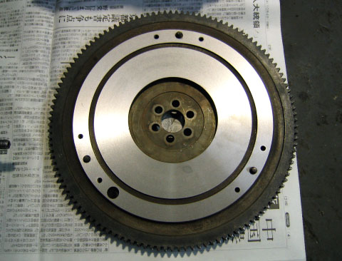 写真11.面研処理が終了したフライホイール 周囲に施されたギアにスターターモーターの駆動ギアが噛み合い、フライホイールを回転させる。 |