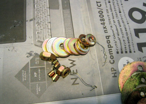 写真6.ワッシャー類 エンジンをマウントする際に用いるワッシャー類もメッキ処理された。 |