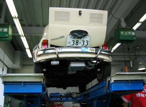 オーバーホール後、約100〜150km程度走行したら、エンジン内のスラッジ除去のためオイル交換を行うことになっている。今回、早くも走行距離が100kmを越えたため、オイル交換を実施した。新品部品を使用しているため、最初は結構オイルにスラッジが溜まると、オンタリオさんよりアドバイスを受けていたが、その通り。抜き取ったオイルは灰色になっていた。余談であるが、オイル交換を行ってくれたショップのメカニックさんは、オンタリオさんオリジナルのステンレスマフラーに目が釘付け状態!その迫力と美しいフォルムに、しきりに感心していた。 さて、オーバーホール後のテストドライブについて、簡単に報告しておく。まだオーバーホール後500km以上走行していないため、いわゆるナラシ運転の域を出ず、目一杯回して走り回ることは差し控えているのだが、それでも整備とボアアップの効果はてきめんに現れている。 まず、トルクアップを実感。特に2速、3速からアクセルを踏み込んだ時の加速が、全く違う。今まで4速ではほとんど加速を得られなかったのだが、今回のボアアップにより4速ですら十分に加速できる余裕がある。エンジン全体の動作音も低く抑えられ、全般的に大変乗りやすく仕上がっているのがわかる。それにしても、ステンレスマフラーの渋〜〜〜い低音は、本当にスバラシイ!!! 一方ミッションであるが、最初の100km程度は、慣れていない1速ギアが若干渋ったものの、その後はスムースに入るようになってきた。1→2速へのシフトアップは、オーバーホール前までは、一呼吸置かないと全く入らなかったが、今回はそのまま普通にスコッと決まる。そのため、加速が目に見えて良くなった。また、従来4速へのシフトアップは非常に入りづらく、妙なコツを必要としたが、今回はそのようなことも全く無くなった。どのシフトもコクコクと小気味よく決まる! ナラシ運転中ということもあり、しゃかりきになってエンジンを回し、ダッシュするような走り方は控えているが、それでも現代のクルマの流れには十分ついて行ける余裕とパワーを得た感じがする。このことは運転中の安心感に直結する。2速や3速で加速する際には、圧縮が充分高く、パワーが出ているという感じがする。特に坂道ではその効果が顕著で、いつもテストに使っている三鷹台付近の急坂でも、従来は1速でヒイヒイ上っていたが、今回は2速で余裕の登坂能力だった。テストドライブ時は、初夏のような気候となったが、パーコレーションやオーバーヒート等の兆候は皆無。エンジンもセル一発起動と絶好調であった。