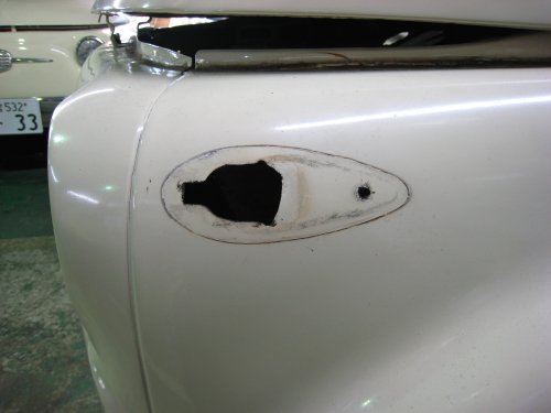 写真17.ヌオーバ(NUOVA)用サイドマーカー装着部分 前回のオーバーホール時に、その余りのレトロなデザインに惚れ込んで装着した、ヌオーバ(NUOVA)用サイドマーカー装着部分。この件については、「ヌオーバ(NUOVA)用サイドマーカーを装着する」を参照されたい。 |