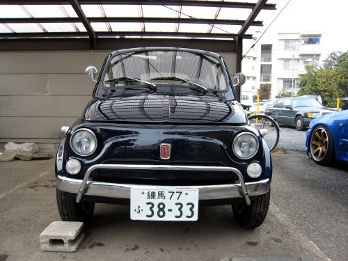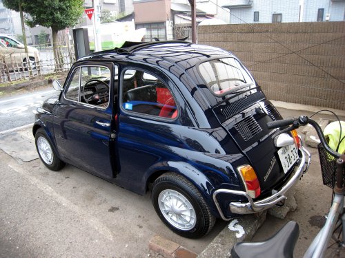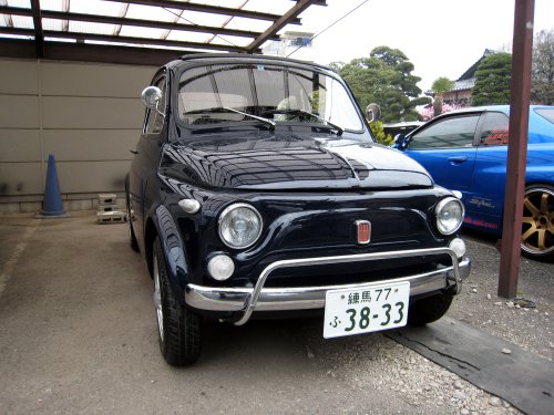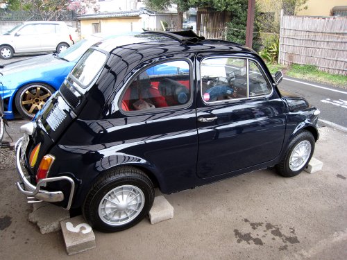写真2.駐車場に戻ってきた500 #1 色が濃くなると、俄然迫力が出る。小さいながらも押し出しは十分だ。でもカワイイ!!! |