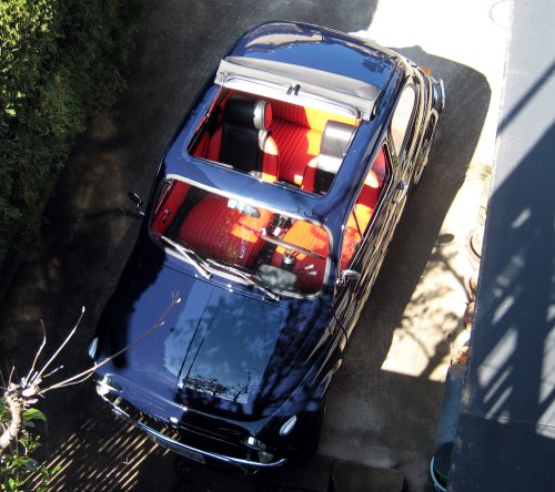 写真4.駐車場に戻ってきた500 #3 キャンパストップも新品に交換してある。 |