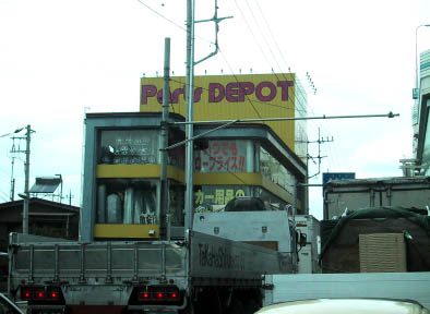 | 写真9.新大宮バイパス沿いに、噂の「Parts Depot」を 発見。PC Depot は良く見かけるが、Parts Depot は初めてだ。写真右下に ちょろっとチンクェチェントの屋根が見える。浦和付近で若干混雑。 |