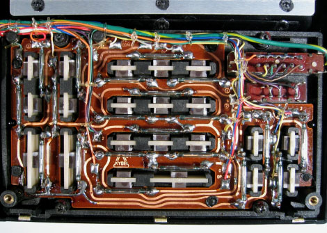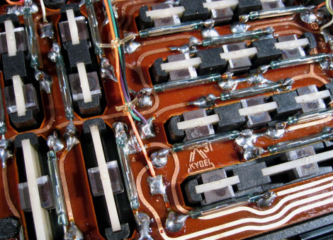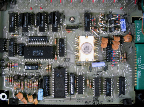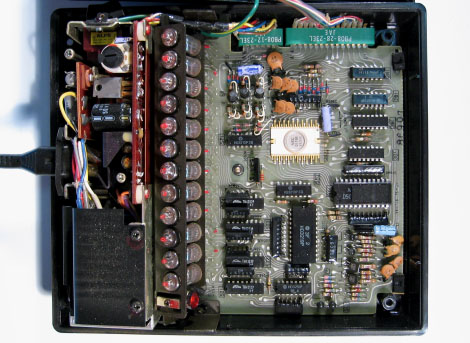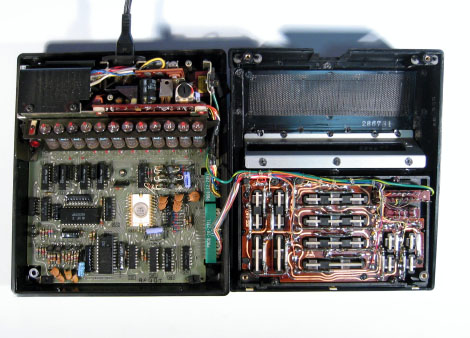 演算用LSIはメインにNEC製μPD174Bを使用している。この石はセラミックパッケージの42 Pin LSIで、丸いメタルキャップが付いた古典的なICだ。その他に、同じNEC製プラスチックパッケージの24 Pin ICが搭載されているが、型番は絶縁スポンジに覆われて確認できない。また、日立製HD3219P 24 Pin プラスチックパッケージも搭載されている。 電卓専用のワンチップLSIが登場する直前の製品であり、複数のLSIとICとから構成されている。基板はガラスエポキシ製。LSIの他に11個のICが搭載される。表示は桁別に分かれている蛍光表示管で、7セグタイプの製品を使用している。蛍光表示管は基板に直接ハンダ付けされ、チューブは鉄製のホルダーで固定されている。数字表示管は12本で、一番左側の桁の床に、オーバーフロー等の際に用いるネオンランプが付いている。 キーボードは磁石リレーを採用している。基板はKYOEI製。本機の製造年だが、筐体裏面に48 3 30の捺印があったところから、昭和48年製(1973年製)と思われる。