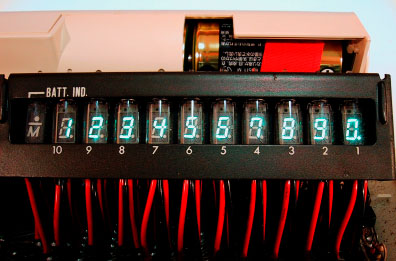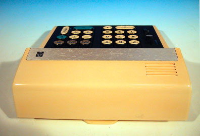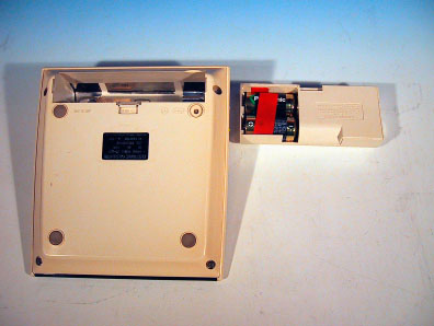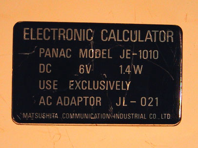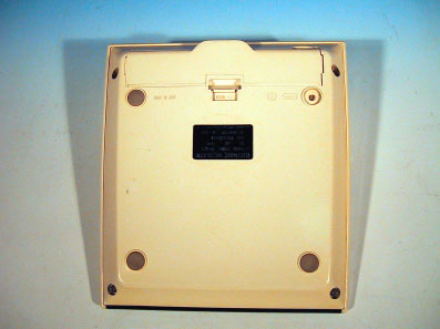 JE−800はAC/DCの2電源駆動が可能であった。JE−1010で も同様に2電源駆動が可能であるが、AC入力はアダプタを介している点が異 なっている。このため、JE−800では本体内部に電源トランスを内蔵して いたが、JE−1010では省略され、本体の軽量化に貢献している。因みに 使用するACアダプタの型番はJL−021となっている。 本体のデザインはJE−800と同様、スペースエイジ感覚に富んだもので 工業デザインの傑作といっても差し支えないであろう。楕円形のボタンの採用 や、表示部分の傾斜など、現代の製品には見られない独特の味がある。本体の 外寸は17×19×7cm。本体定格は6VDC、1.4Wとなっている。 JE−800が3Wであったことを考えると、かなりの省電力化がなされてい る。以上から考えても、JE−1010の製造年月はJE−800より後と思 われる 本体裏側にはバッテリボックスが搭載される。使用する電池は単二型で全部 で4本も用いる。電池ボックスには、ACアダプタ接続用のコネクタが搭載さ れている。