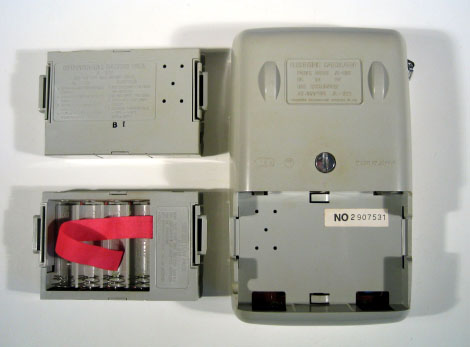 写真7.Panac JE-850 本体裏面 専用Ni-Cdバッテリパックと単三乾電池アダプタの両方が使用可能 |