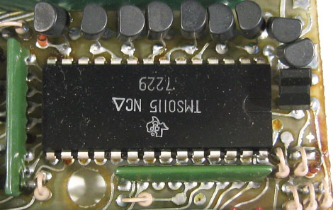 写真12b.演算用LSIのアップ メインとなる演算用LSIには、TI社のワンチップ製品「TMS0115NC」が用いられる |