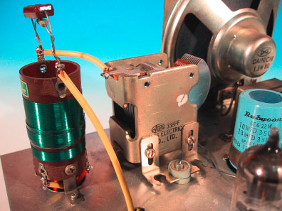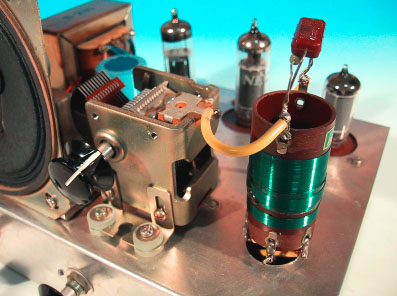 使用している部品であるが、前出の浦沢商会RK−3型と大きく異なっている ところが電源トランスである。このラジオでは、縦型にマウントするタイプのも のが使用されている。RK−3型に使用されていた古典的な形状の電源トランス は、この頃既に入手しにくくなっていたものと思われる。 バリコンは、今となっては非常に懐かしいアルプス電気製の338PF単連バ リコン。コイルは当時としては定番であったトリオの並四コイルが使用されてい る。コストを優先し、電源スイッチにはボリウムと分離したタイプのものを採用 しているので、RK−3型に比べるとツマミの数が1つ多い。 参考までに、トリオ並四コイルの取り扱い説明書を下記に掲載しておく。 ・トリオ 並四コイル 取り扱い説明書