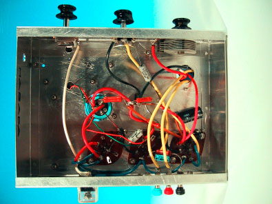 ここに掲載したラジオは、前出の浦沢商会製並三3球ラジオRK−3型と同じ 構成のものだ。但し、浦沢商会のキットが1971年頃の製品だったのに対し、 ここに掲載したものは1974年頃のものであり、3年程度後に作られている。 このラジオは、筆者が中学生の時に、技術家庭の実習として制作したものだ。当 時、技術家庭のラジオ製作実習は、ちょうど真空管方式からトランジスタ方式へ 転換する時であり、他の学校では一部トランジスタを使用した実習を行っている ところもあった。筆者が通っていた中学校では、従来通りの真空管式3球ラジオ を製作していたのである。いかに1974年頃のこととはいえ、真空管式の部品 は手に入りにくくなってきていたのは事実であり、確か翌年の実習からはトラン ジスタラジオになったような記憶がある。 基本構成はごくごく一般的な3球ラジオそのものであるが、浦沢商会のキット と異なり、シャーシは自分で加工しなくてはならないし、前面化粧パネルも付い ていない点が、いかにも実習教材らしい。