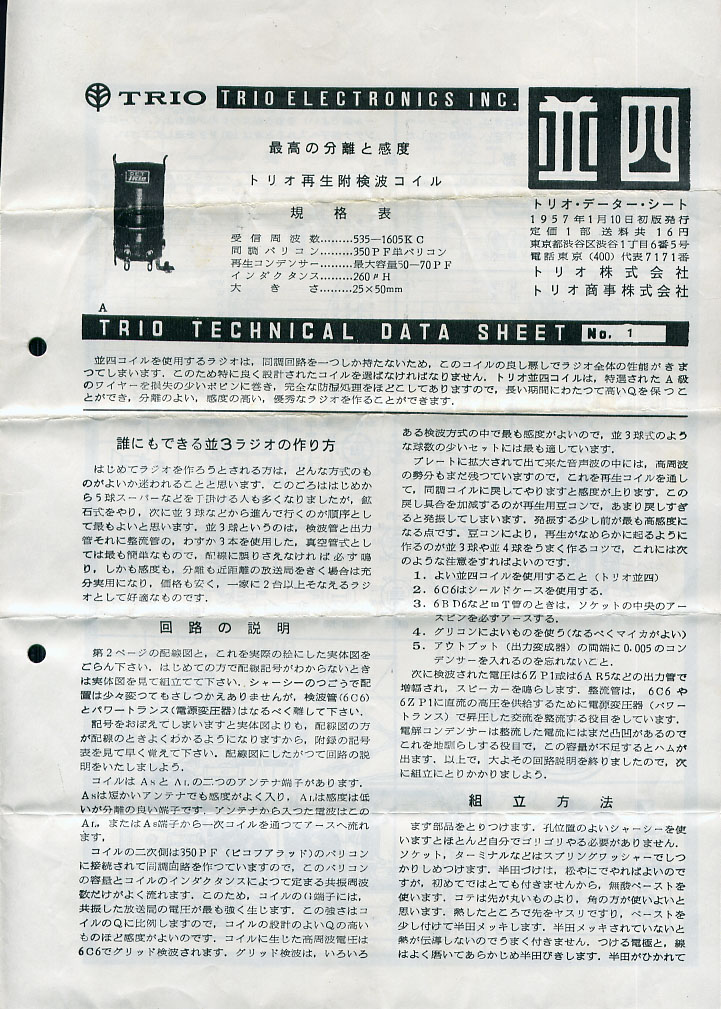 ■ 並四コイル取り扱い説明書箱 Page1 ■