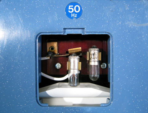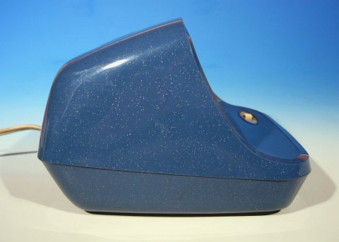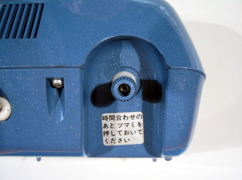 「スヤスヤピヨ」という絶妙の商品名を持った電気目覚まし時計。1970年代スペースエイジのデザインが秀逸。とてもナショナルらしからぬデザインだ。全体の雰囲気は、どことなくダルマさんを感じさせる。ころころと丸っこくてカワイイところが非常に気に入っている。スヤスヤピヨという商品名の通り、夜中でも文字盤を明るく照らすことができ、アラーム機能内蔵でピヨピヨと音が鳴る。松下電工株式会社製造、50Hz専用品。定格はAV単相100V 3Wとなっている。 アラームのON/OFFは前面パネルに設けられたスイッチで行う。本体上部のスイッチを押すと、ランプが点灯し、夜間でも文字盤が見える仕組みだ。本体下部に照明用ランプ取り替え口がある。ランプは30V 30mA仕様。補助ランプ1個付き。