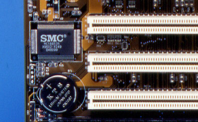 ■コメント M558はM559からサウンド機能を削除した廉価版マザーボードです。 このボードにはいくつかのバージョンが存在しました。本ページに掲載したカ タログの写真では、L2キャッシュモジュール搭載用のスロットがありますが 写真1に示したボードにはありません。L2キャッシュは256k/512K のいずれかが選べたようですが、写真1のボードでは256K固定のバージョ ンとなっていたようです。廉価版のボードだけあり、できるだけコストダウン を図った結果なのでしょう。この頃はまだキャッシュメモリの集積度が低かっ たため、キャッシュメモリのチップを4個も使用しています。その後512K のキャッシュメモリチップの搭載により、チップ数の削減が図られます。 サウンド機能はオンボード搭載されていませんが、マルチI/O機能は内蔵 していました。I/O制御用チップには、SMC社製のMC16651が使用 されていました。M559では168PinのDIMMメモリも使用できるよ うに設計されていましたが、M558では72PinのSIMMだけしか使え ません。このあたりも、コストダウン優先の製品だったことが伺われます。