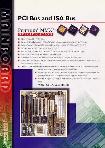 | CPU | intel Pentium P54C/P55C(MMX)、AMD K5/K6 IDT C6、Cyrix/IBM 6x86/6x86L(M1)/6x86MX(M2) |