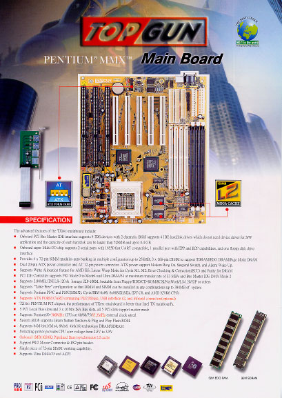 | CPU | intel Pentium P54C/P55C(MMX)、AMD K5/K6 IDT C6、Cyrix/IBM 6x86MX(M2) |