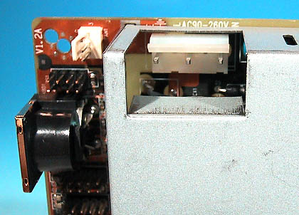 写真9:周辺機器用電源コネクタ 中央の白いコネクタが、一般的な周辺機器用電源供給コネクタ |