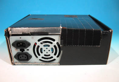 写真14:ダンボールケース背面 電源ファンのちゃんと備わっている |