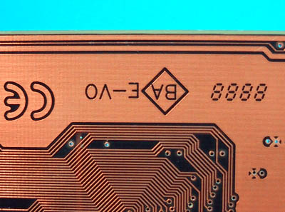 写真8:基板上の捺印 製造年月は試作を示す「8888」表示 |