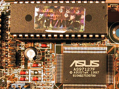 ■台湾のマザーボードメーカ、ASUSTek社製Slot−1搭載マザー、 P2E−Bマザーボード。Baby−ATフォームファクタ。寸法22×23 cm。1998年11週製造。ボードのリビジョンは1.00。 ■チップセットに、Intelの440EX AGP Chipsetを搭載 した、Slot−1のマザーボード。チップの型番はFW82443EXと FW82371EB。共にBGAパッケージ。 ■バススロットは全部で6本搭載。内訳はAGP1本、PCI3本、ISA2 本の構成。 ■レベル2キャッシュは、Pentium−IIのSECカートリッジ内に搭 載された512KB。Pentium−IIは233〜333MHzの製品 を搭載できた。FSBは66MHz。倍率は3.5、4、4.5、5倍が選 択可能。 ■オンボードでIDE,FDD、PS/2、IrDA、シリアル、パラレル、 USBの各I/Fを搭載。このうち、USB、Mouse、IrDAは、専 用のライザーカード(ASUS USB/MIR)で提供する。ボード上に は、専用の温度センサーを搭載している。 ■DIMMスロットは2基搭載。メモリ容量は最大256MBまで。 ■主な使用デバイスは下記の通り。 ・intel FW82443EX :440EX AGPset ・intel FW82371EB :PIIX4 PCIset ・Winbond W83977TF :Multi I/O ・Winbond W83781D :ハードウエアモニター ・ASUS AS97127F :ASIC チップ ・PhaseLink PLL52C66:クロックジェネレータ ■以下にボードのスペックを示す。