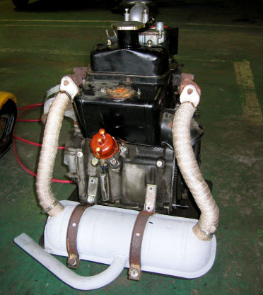 写真10.マフラーを取り外したエンジン マフラーとステーをエンジンから取り外したところ。 |