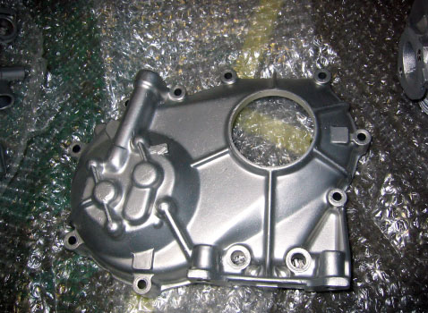 写真5.タイミングチェーンカバー表面 普段見慣れたパーツでも、洗浄するとまるで別物に見えてしまいますな。。。 |