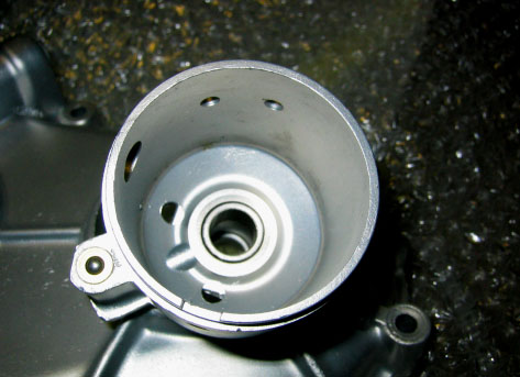写真17a.クランクケース内部のアップ なんかもう、使うのがもったいなくなってしまうほど浄化された世界。。。至福の空間、彼岸の境地・・・なんのこっちゃ。。。 |