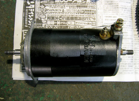写真8.オーバーホールが終了したダイナモ 右側がファンベルト側。各部が洗浄され、再塗装されているのでまるで新品のようだ。表面にはエンボスで刻印が入っている。「DSV90/12/06/3S 4034346」と読める。 |