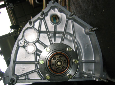 写真11.クランクシャフト側から見たクランクケース こちらもメインベアリングが取り付けられている。 |