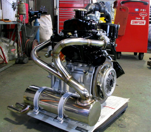 写真0.ついに組上がったエンジン本体!マンセー!!! 取り外した時の光景を知る人間にとって、信じられないくらいのコンディションに再生されたエンジン本体!オンタリオさんオリジナルのステンレスマフラーが、ド迫力である。このままガラスケースに入れて、眺めていたいくらいだ・・・ ヽ(´ー`)ノ |