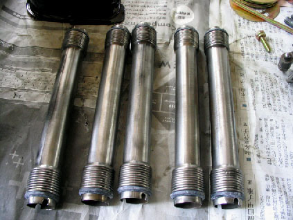 写真1.整備が終了したプッシュロッド・チューブ バルブ用4本+オイルリターン用1本の計5本のプッシュロッド・チューブ。 |