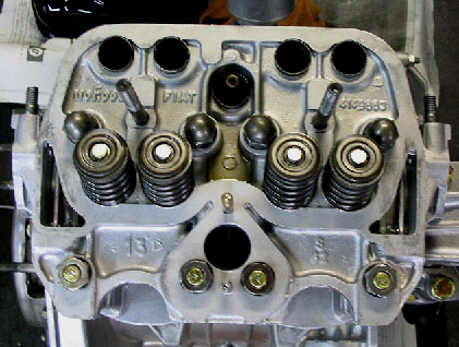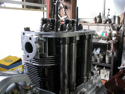 写真8.組み立てが終わったシリンダーヘッド 一連の作業が終了し、組み立てが終わったシリンダーヘッド。後はタペットカバーを装着するだけの状態。 |