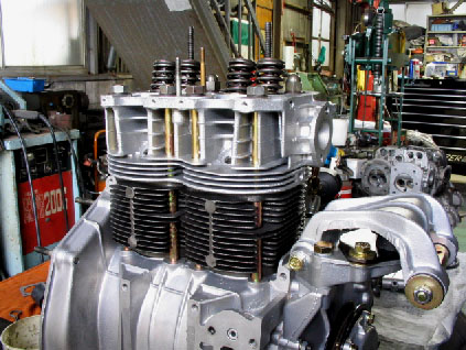 写真4.シリンダーヘッド搭載 シリンダー上部にシリンダーヘッドが搭載されたところ。 |