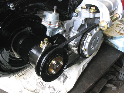 写真12.Vベルト装着 冷却ファンとダイナモを駆動するVベルトが搭載されたところ。 |
