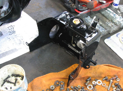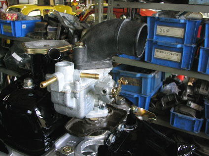 写真13.キャブレター搭載 組み立てはどんどん進む!キャブレターをベースプレートに固定したところ。 |