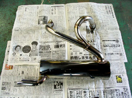 写真17.ステンレスマフラー登場 今回のチューンナップの目玉である、オンタリオ特製オリジナルステンレスマフラーが登場!細身の2本出しタイプ。う。う。う。美しい〜〜〜!!!萌え〜〜〜!! (;´Д`) |