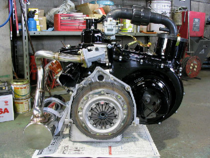 写真19.エンジンユニット完成! フライホイール側から見たエンジンユニット。 |