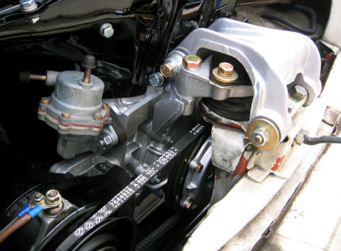 写真5b.オーバーホール後の燃料ポンプ付近 アルミのクランクケースには、オイルの滲み一つ無い。その差歴然!? |