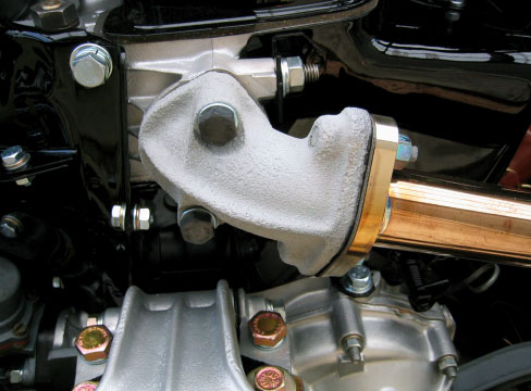 写真7.エギゾーストマニホールド部分のアップ エギゾーストマニホールドボルト4本は新品に交換している。 |
