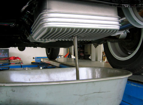 写真3.オイル交換中! 新品部品を使用しているため、初回のオイルにはスラッジが多く含まれている。今回はそれを全部入れ替えるためにオイル交換を行った。言われていた通り、オイルにはスラッジが多く含まれていた。 |