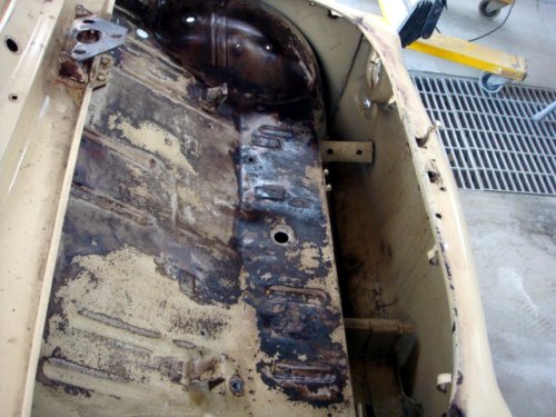 写真3.フロント・ランゲッジ内部 元の塗装が弱い部分は、剥離処理している。 |