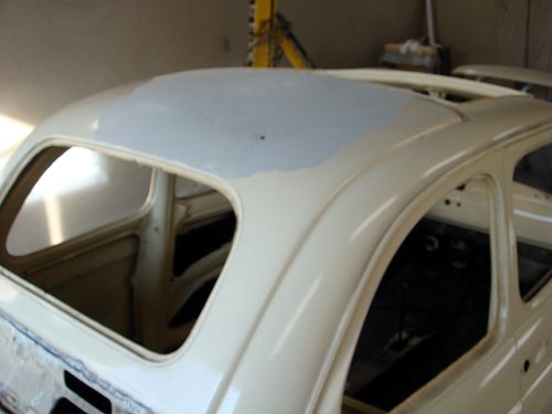 写真4.ルーフ かなりの部分を剥離し、修復処理している。 |