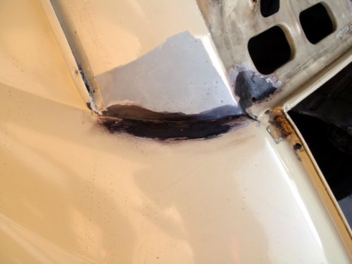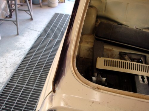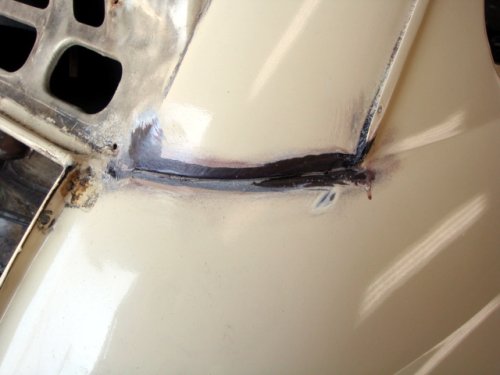 写真7.左側リアフェンダー付け根の部分 ここも右側同様、錆が浮いていたところだった。 |