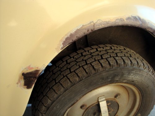 写真8.左リアのホイールハウス部分 オーバーライダーで手が届きにくかった部分に錆が出ていた模様だ。 |