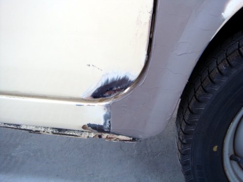 写真2.右側面部分 右フェンダーのドアとの境界辺りを、徹底的に修復している。 |
