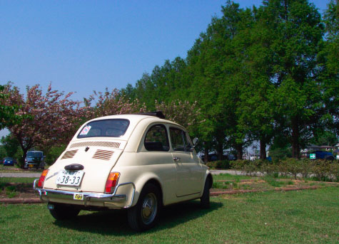 ■2003/04/28〜2003/05/24掲載 2003年2月28日から短期間掲載した「さいたま市民の森」で、撮影したものです。前回掲載写真は冬枯れの木が背景でしたが、今回は鮮やかな新緑となりました。芝生も一面緑で、八重桜も咲いています。撮影当日は5月連休の中日。休暇を取っている人も多いようで、公園でのんびりと散歩する人を沢山見かけました。初夏のような陽気で、半袖でちょうど良いくらいの気温です。しかし、湿度が低くたいへん過ごしやすい日となりました。これから気温も湿度も上がり、空冷のチンクェチェントにとっては厳しい季節が始まります。