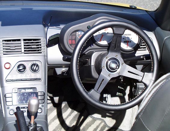 ・撮影日 :1998年07月27日(火曜日) ・撮影場所 :栃木県茂木町のツインリンク茂木 ・使用カメラ:OLYMPUS Camedia ・コメント : Randy氏のBEATのインパネ回り。ナルディのハンドルが付い ている。走行距離計は、23600kmを示している。