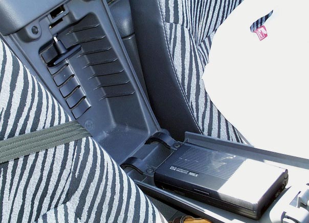 ・撮影日 :1998年07月27日(火曜日) ・撮影場所 :栃木県茂木町のツインリンク茂木 ・使用カメラ:OLYMPUS Camedia ・コメント : Randy氏のBEATに装着されたトランクオープナー。BEAT にはトランクオープナーが着いていないが、Randy氏は部品を購 入して、オープナーを装着してしまった。運転席と助手席との間にあ るカセットフォルダーの中に、オープンハンドルを組み込み、ワイヤ ートランクのラッチを開放する仕組みである。余談だが、画面右下に ちょこっと見えている携帯端末は、氏が愛用するHP100LX。