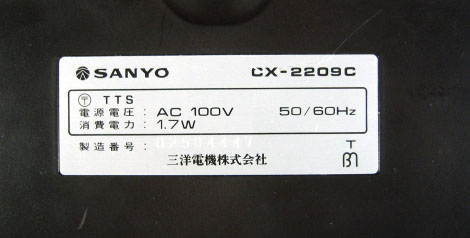 写真7.SANYO CX-2209C 本体裏面銘板のアップ |