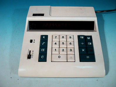 本体裏面の銘版を見ると、TEAL(ティール)の文字が記されている。 おそらく、内部の電卓回路は、当時国内外のメーカーへ積極的に電卓をOEM 供給していた、東京電子応用研究所(ティール)製造のものだと考えれる。 TEAL(ティール)社は、昭和43年に電子機械振興協会卓上電子計算機分 科会会長が、タムラ電子の後援で設立した会社であった。電子立国日本の自叙 伝によれば、MOS−ICの導入により部品点数を削減し、またコンデンサメ モリの搭載により、安価な電卓を供給していたということである。国内では、 キャノン、東芝、日立へOEM供給を行っていた。末期の激戦で、国内の電卓 メーカーは相次いで倒産に追い込まれたが、TEAL(ティール)社はこれら 一連の淘汰の最終期、昭和53年1月に倒産した。最後の電卓倒産メーカーだ と言われている所以である。